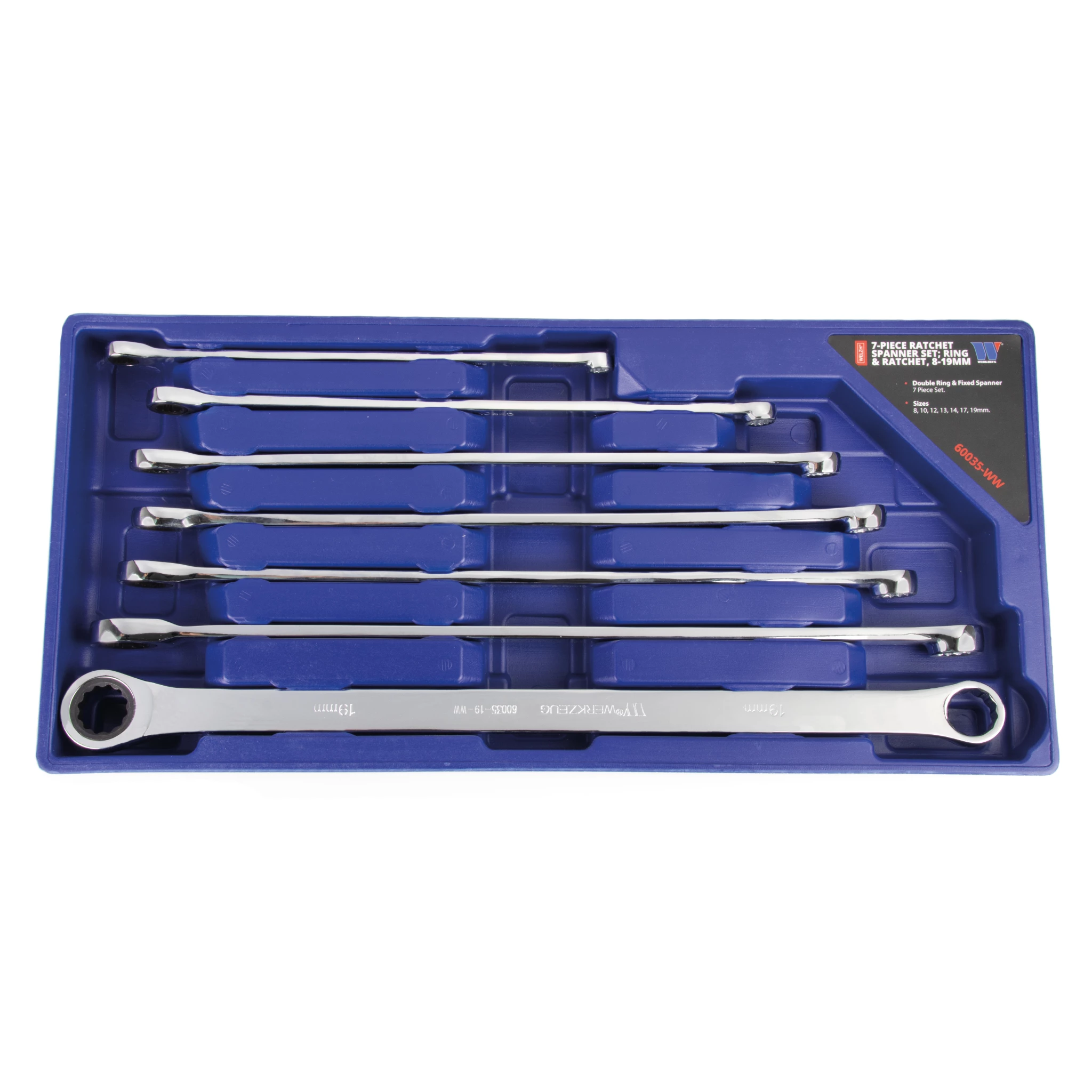 Welzh Werkzeug 60035-WW tálcás, extra hosszú, egyenes racsnis csillagkulcs készlet, metrikus, 7 részes
