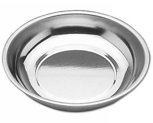 Kör alakú, mágneses, rozsdamentes tároló tálca csavarok, apróbb fémből készült alkatrészek tárolására.